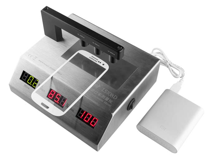 LS108A的測量孔徑是1mm,這樣有的手機鏡片的距離及位置感應器孔太小,不能準確的測量。LS108D,改進的測試孔,測量更加準確。5V AC/DC電源供電,也可移動電源(充電寶)供電(選配)。