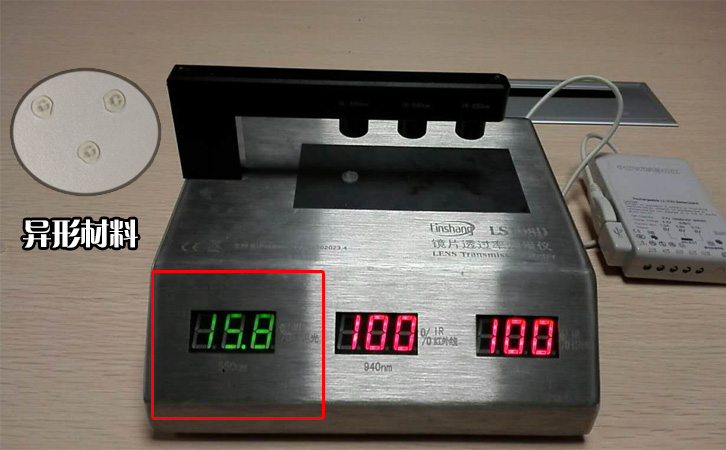IR油墨測試儀LS108A和LS108D,主要應用行業是手機鏡片,紅外油墨,后來有客戶把儀器應用到了紅外濾光條行業,今天要說的是IR油墨測試儀使用新方法,測試的材料是一個異性材料,具體使用行業不清。