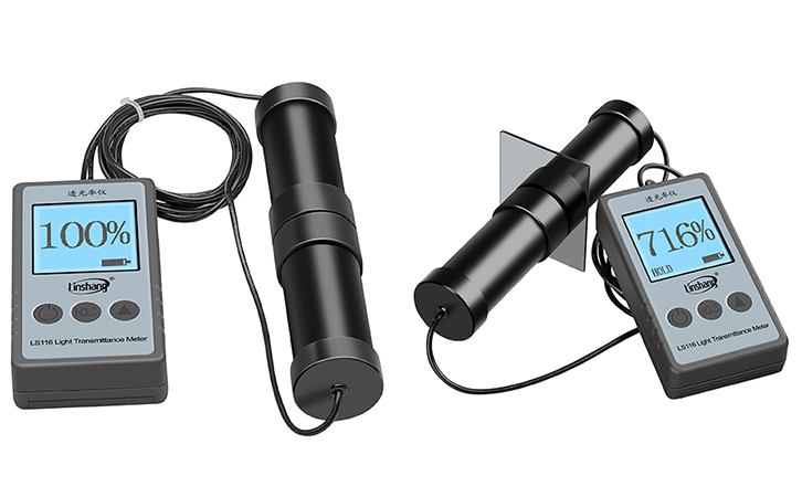 LS116透光率計主要用于規則透射材料的透光率檢測,如平面透明材料,有機材料,鍍膜材料,玻璃等。透光率計的單位為百分比,透過率光強與入射光強的比值即為透光率。