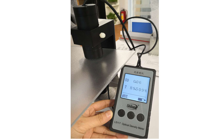 磨砂玻璃的透光率通常用林上科技便攜式透光率儀來測量。儀器光源符合CIE明視覺函數(shù)標(biāo)準(zhǔn),確保通過計量院檢測。